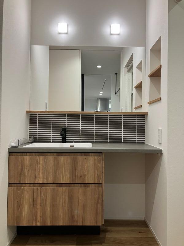 造作洗面:トイレの中に手洗いを設置せず、造作洗面を隣に配置しました。