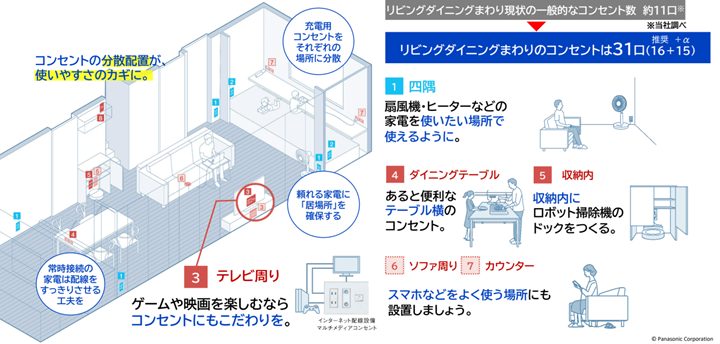 一般的な住宅で、リビング・ダイニング周りの現在のコンセント数は約11口だとか。