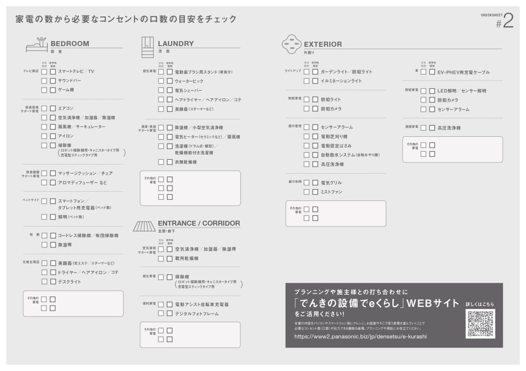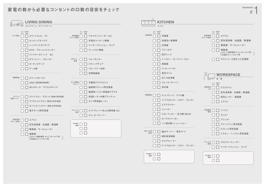 Panasonicさんからコンセントチェックシートが出ているので、参考にされてみてはいかがでしょう(^^♪