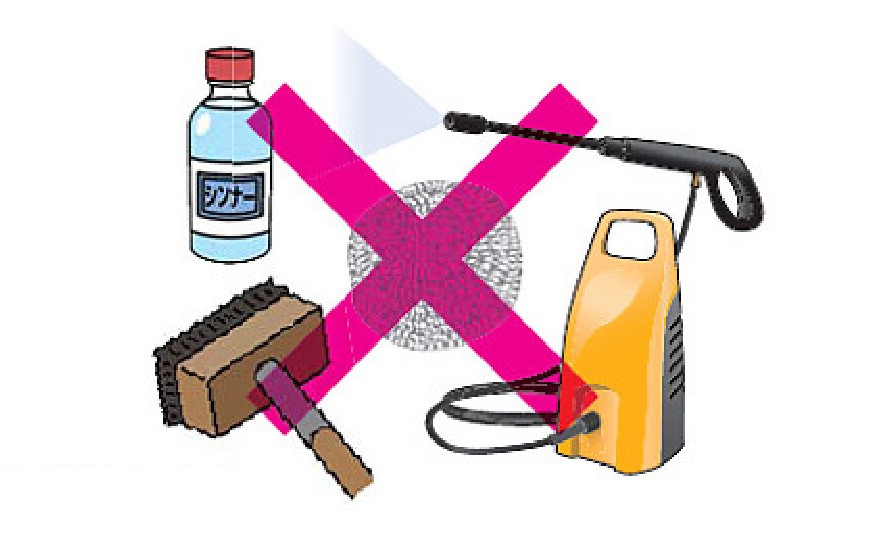 また、高圧洗浄機同様にシンナー等の溶剤を塗布したり、金属タワシなどの硬いブラシも外壁を傷める要因になります(+_+)